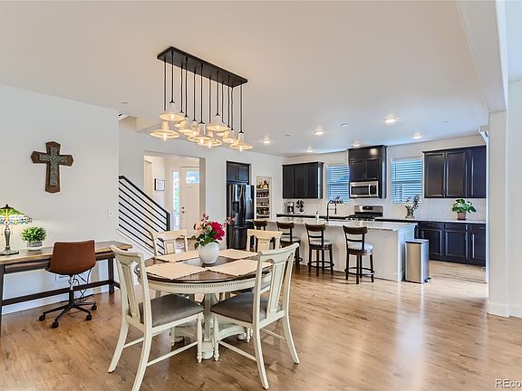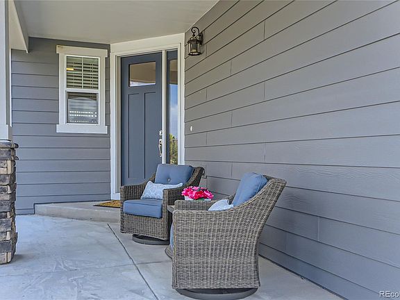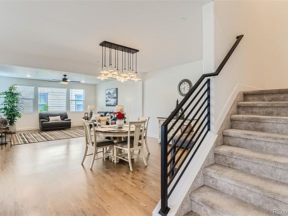 Don't miss this gorgeous, completely turn-key Registry Ridge duplex full on a corner lot overlooking a park! The pristine interior boasts lovely granite countertops, neutral paint, tall ceilings, modern recessed lighting, upgraded ceiling fans, and brilliant natural light throughout. Graciously host family and friends year-round from the expansive open concept main floor that is anchored by a cozy gas fireplace in the living room and opens out seamlessly to the patio and fenced backyard via a sliding glass door. The home chef will enjoy the spacious kitchen that delights with a stylish herringbone tile backsplash, abundant cabinet space, a large island with seating, a walk-in pantry, and stainless steel appliances including a gas range. The main floor is completed by a powder room and access to the two-car garage that provides excellent additional storage space. All three bedrooms and the laundry room are conveniently located on the upper level. Two sunny secondary bedrooms share a well-appointed full bathroom with double sinks while the primary suite enjoys a tray ceiling, a walk-in closet, and a luxurious five-piece bathroom with a barn door entry. This gem also has fantastic outdoor living space that includes a fenced backyard with new landscaping and a neat front yard that makes for excellent curb appeal. Best of all, you can take in the beautiful sunset on the front porch or the views of the sunrise over the foothills from the back patio. Wonderful location on a quiet cul-de-sac that overlooks a park and is across the street from miles of walking/biking trails. Relish quick access the the community pool, parks, shopping, and dining.