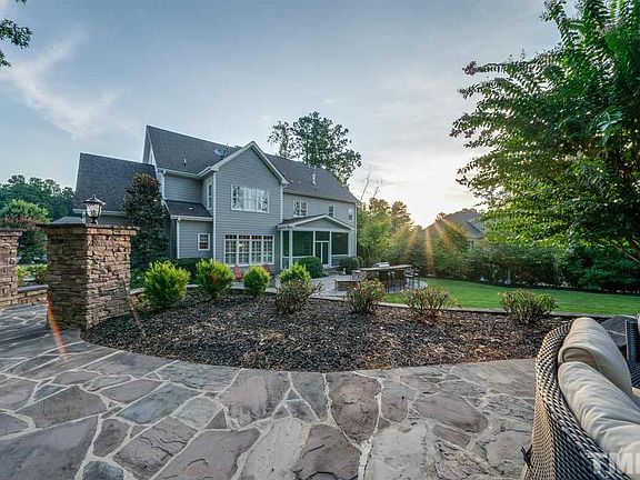 Located in West Cary's premier luxury neighborhood, this home is ABSOLUTELY STUNNING inside & out. MUST SEE lush back yard w/ cascading pond, huge patio, outdoor kitchen & SPECTACULAR fireplace. Inside you'll find DISTINCTIVE millwork, arched entryways, coffered & tray ceilings, freshly paint, built-ins galore & plantation shutters. The bright white kitchen is outfitted w/ Dacor appliances & a lg island. DREAMY master suite w/ sitting rm. Massive, BEAUTIFUL 3rd floor. 1st fl guest bed/bath & sep office.