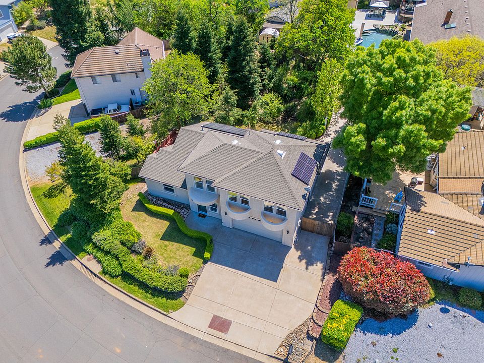 Nestled in the serene Country Oaks subdivision, this charming 2-story home boasts a fresh exterior paint that adds to its curb appeal. With 3 bedrooms, 2.5 bathrooms and a main bedroom suite on the first floor, the residence offers ample space for comfort and privacy. The backyard is a slice of paradise, featuring majestic redwood trees and a deck perfect for entertaining or simply enjoying the tranquility of nature. Wandering paths, raised garden beds, RV/Boat owners will delight in the convenience of dedicated parking space. Plus, harnessing solar power ensures this home is as energy efficient as it is charming! This home is an idyllic retreat for those seeking a peaceful lifestyle.