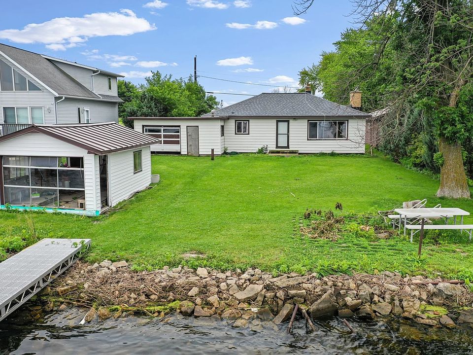 Located on the shore of beautiful Lake Winneconne, this 2BR/1BA ranch home features an open-concept living area clad in knotty pine, large windows overlooking the lake, and fully-equipped kitchen w/ all appliances included! Living room w/ wood-burning fireplace. Large primary bedroom, 1st floor laundry w/ included stackable washer/dryer. Updated bathroom w/ walk-in shower. 1.5 stall attached garage. On the water's edge is an included dock w/ boat-lift & nearby boat-house! Home will need some TLC to make it your own, but also has some great updates--roof replaced in 2023! This is an Estate as-is sale. Please allow a minimum of 48 hours for binding acceptance.