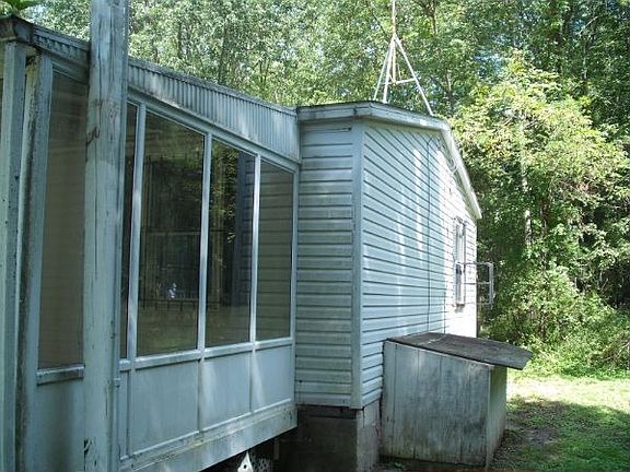 Exterior Features: Overall fair conditions. Nice size yard. 4.85 acres. Enclosed porch. Exterior siding just needs a power wash. House sits in a wooded area on a quiet street. Nice garage and a shed. Interior Features: All rooms in need of carpet flooring. Some electric wires have been cut from the electric panel box. Kitchen and bathrooms in fair to poor conditions. No heating unit. No appliances.