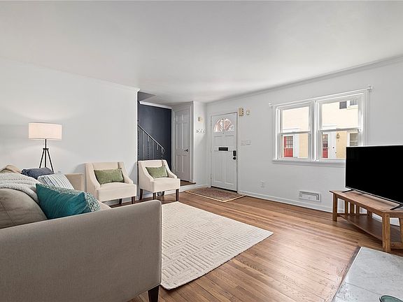 Endearing Meade Court townhome is your garden oasis in the city. Romantic Point Breeze location with invaluable amenities including central A/C, private integral garage, and multi-level living. Beyond iron gates, a cheery courtyard welcomes you to Unit 8. The front door opens to the large living room with coat closet. The dining room can easily seat 6. Basement access is through the kitchen, where you'll find laundry, ample storage, and the 1-car integral garage. Floor two hosts 2 spacious bedrooms and the updated hall bath. Monthly HOA is $230 and covers roof, landscaping, snow removal, water, and sewage. A true gem!!