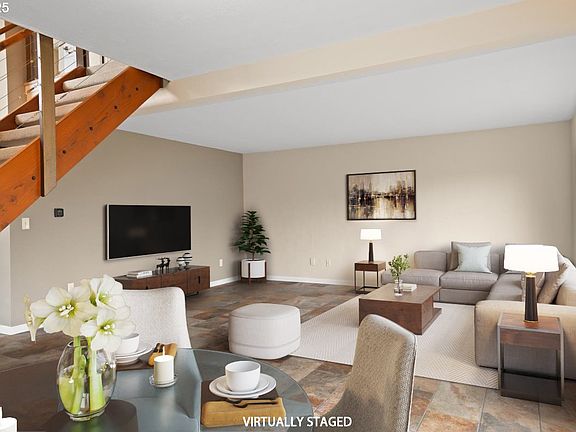 Tucked away in the quiet Mt. Scott-Arleta neighborhood, this beautifully updated home is full of surprises—in the best way. Step inside & you’re immediately greeted by a flood of natural light from the large picture window, clerestory windows, & sliding glass door, all working together to create a warm, inviting space. The open floor plan is made for entertaining, with a stunning remodeled kitchen featuring granite countertops, stainless steel appliances, and a peninsula perfect for casual dining. Need more space? There’s room for a proper dining table, too. The first floor is as stylish as it is functional, with slate tile flooring throughout, a dramatic open-riser staircase that adds modern flair, and a living room so large you might just have to buy more furniture. A conveniently located half bath with updated fixtures and a laundry annex rounds out the main level. Upstairs, brand-new carpeting leads you to three generously sized bedrooms—two of which are downright huge. Need an extra room? One of them is easily large enough to divide into two. The updated bathroom is a thoughtful design, with new flooring, a sleek double vanity, & a medicine cabinet you won’t believe. The separate bathing and toilet areas make mornings a breeze. Step outside, and the surprises keep coming. A composite wood patio just off the sliding glass door is perfect for outdoor dining, and a charming pond (safely tucked behind fencing) adds a touch of serenity near the entry. The lot feels even larger than it is, thanks to an extra strip of land that technically belongs to the city—but hasn’t been touched in years. Practical updates make this home even better: owned solar panels keep utility costs low, the roof is only four years old, and the entire interior has been freshly painted. The oversized attached garage offers plenty of storage.A home this move-in ready, stylish, and spacious at this price? You don’t see that every day. Don’t miss your chance- schedule a showing before it's gone! [Home Energy Score = 6. HES Report at https://rpt.greenbuildingregistry.com/hes/OR10235820]