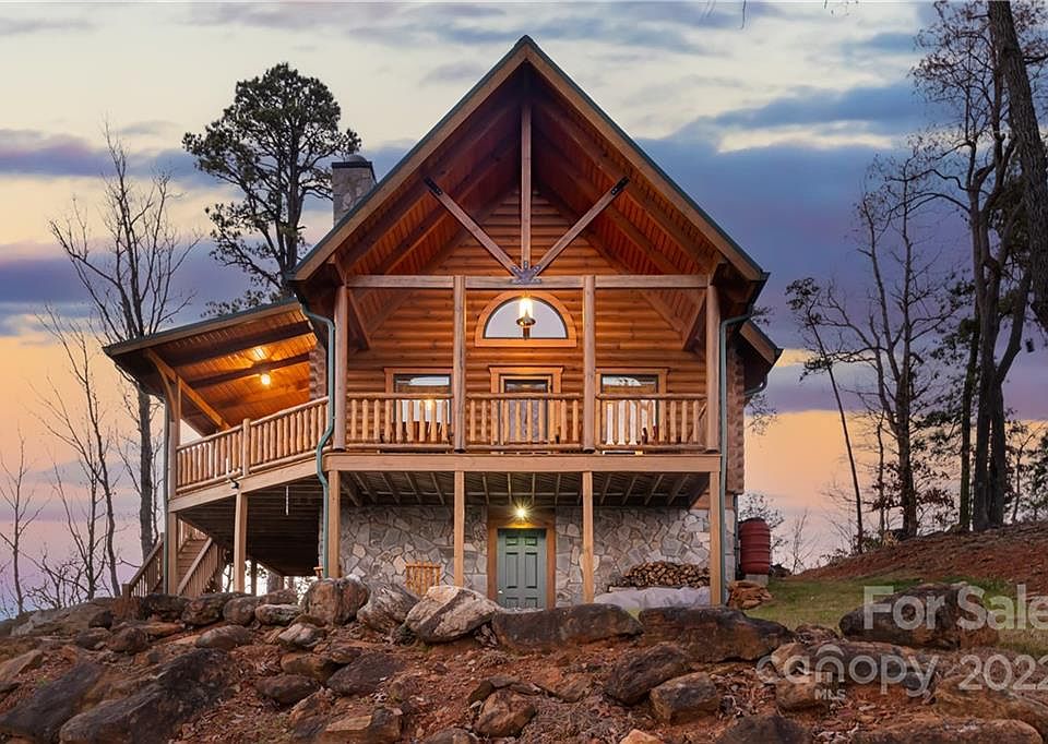 Your chance to own a true cabin in the clouds! Long-range mountain views spanning nearly 360 degrees capture Lake James, Table Rock Mountain, and the Charlotte skyline. Perfectly placed upon the mountain top and backing up to South Mountain State parks, this log cabin is one of a kind. 3 bedrooms and 2 full baths of simple luxury living. After exploring the outdoors, cozy up to the wood-burning fireplace. Laundry on the main level. Storage space below in the unfinished basement. House is meticulously maintained. Logs were treated and sealed in 2021. The community is gated as well as an additional gate for a private driveway. The location is the perfect mountain escape and yet offers convenience as it's only 20 minutes to downtown Morganton and 1 hour to either Asheville or Charlotte.