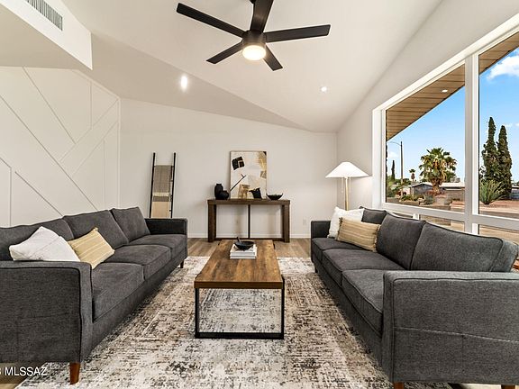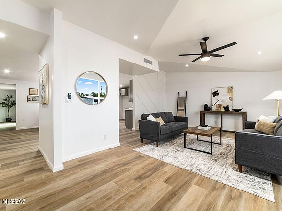 Welcome to the newest Synrgy design. This remodeled oasis is a stunning 3 bedroom 2 bath residence with a 1 bedroom guest house making it the perfect place to call home. This home features Luxury vinyl plank flooring throughout, new double pane windows, recess LED lighting, New HVAC, New kitchen cabinets, quartz counter tops and stainless steel appliances. Don't forget to see the details in the bathrooms such as the beautiful floating vanities, back and front lit mirrors, black shower trim, faucets and ceramic tile flooring. Enjoy dinner next to a wood burning fireplace which has been customized with black ceramic tile. this home is conveniently located near parks, schools, shopping, dining, & major transportation routes, offering easy access to all that Tucson has to offer. Owner/Agent