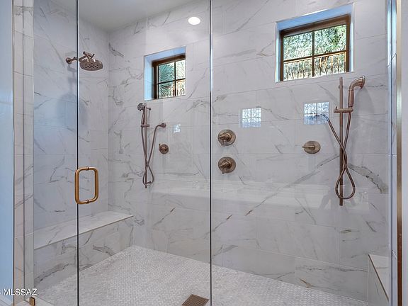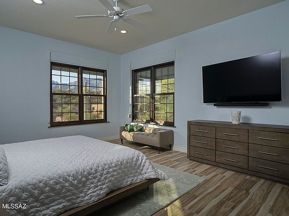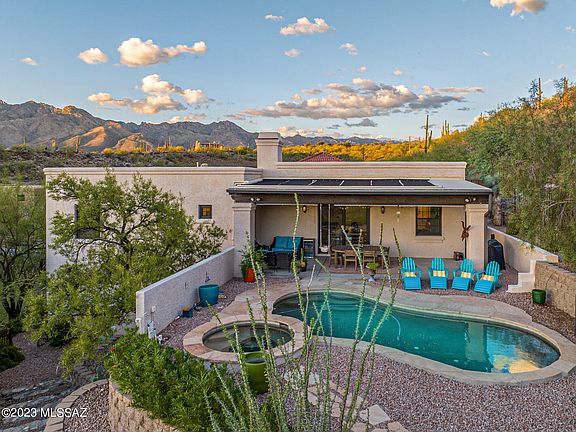 Perched on an elevated 2.45 acre lot in the Catalina Foothills, this 4 bed/ 3 Bath, 2991 sq. ft. home offers magnificent 360 degree mountain & city views. Meticulously maintained w/ 2 new HVACs, rolling shutters, owned solar & built with integra block construction. Step inside to discover an inviting & spacious interior filled w/ an abundance of natural light & stunning mountain views from every window. This home boasts 4 spacious bedrooms, including a primary suite that exudes relaxation. The en-suite bathroom features gorgeous marble floors, tastefully remodeled shower w/ dual shower heads, dual vanities, & a walk-in closet custom designed by California Closets. The additional bedrooms & two full bathrooms are thoughtfully situated, providing comfortable accommodations for family or