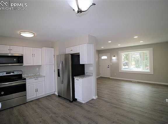 Home Has Been Totally Remodeled! New Exterior & Interior Paint Including Ceilings & Garage, New Engineered Plank Flooring In Living Room, Hall, Kitchen & Bathroom, New Carpet In The 3 Bedrooms, New Appliances, New Windows, New Cabinets & Sinks In Kitchen & Bathroom, New Disposal, New Bathtub, New Light Fixtures Throughout Including 6 Canned Lights & Sconce Light In Living Room, New Faucets In Kitchen & Bathroom, New Patio Door, Most All New Doors Throughout Interior, New Garage Door w/Remote, New Paint On Front Porch & Railing And New Paint On Deck In Back! 95% Fenced Back Yard Has A Shed, Dog Run And Spacious Deck! Newly Xeriscaped Landscaped Front Yard, But There Is A Sprinkler System Under Landscaping. Drip System Is Active To Allow Planted Bushes To Have Water.
