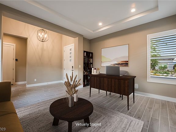 2Bed/ 2.5Bath/ Den/ 2,214sq.ft/ separate courtyard and covered patio. The Sundance effortlessly blends elegance, functionality, & breathtaking surroundings. Inviting covered entry. The Elegant foyer showcases a tray ceiling, setting the tone for the home's sophisticated atmosphere. A beautiful den awaits, featuring expansive windows that fill the room w natural light & offer views of the courtyard. The courtyard is a tranquil outdoor escape, providing an intimate space to relax. The kitchen is a chef's dream, opening into the enormous great room. The great room itself is adorned w a fireplace, creating a cozy ambiance, while the adjacent dining room provides the perfect setting for memorable meals. The multi-stacking door adds to the seamless indoor-outdoor living experience connecting you to the covered patio & rear yard w beautiful mountain views. Retreat to the primary suite, where luxury awaits. Add'l highlights: secondary en-suite bedroom, surround sound & 10'ceilings
