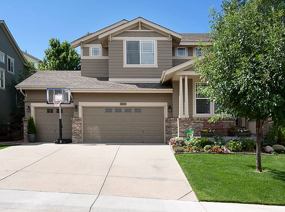 Welcome to your beautiful home in the Castle Pines North neighborhood! Located on the corner of an elevated cul-de-sac, it provides peaceful relaxation and beautiful views of the mountains and DTC. This recently updated home feels fresh and modern with beautifully finished hard wood floors and newer paint throughout the main level. The open floor plan, with an abundance of natural light, is warm and inviting. Your updated kitchen is a chef's dream and perfect for entertaining; complete with cherry cabinets, granite countertops, stainless steel appliances, large island, and inlayed tile backsplash. As you step outside, a spacious backyard awaits with a new paver patio, a custom designed sitting area, and mountain views. Other features include new water heater, master suite with mountain views, a large upstairs loft and a massive three-car garage with ample storage for bikes, tools, and all your toys. You're just a short walk from numerous neighborhood amenities, such as the pool/clubhouse, Coyote Ridge Park, community events/music festivals, miles of trails for biking and hiking, and Daniel's Gate park. There's always something to keep you busy! The central location provides easy access to I-25, C-470, DTC, and downtown Denver.