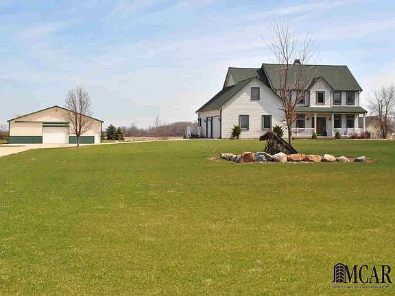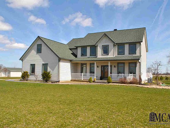 Spectacular, well maintained home on 6 acres offers 4 bdrms, 2.5 baths. Large eat-in kitchen w/island, plenty of counter space, walk in pantry. Enjoy double brick fireplace in family rm and kitchen (gas/wood). Hardwood floors through-out main floor. Huge master suite w/walk-in closet laundry area and bonus room. Partially finished basement. Outside is 48x64 Pole building, insulated w/radiant heat and water, hoist. Large Trex deck, stamped concrete sidewalks. Plenty of updates. Also plumbed for main floor laundry.