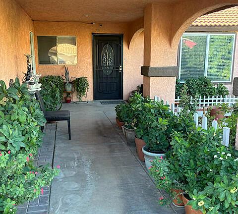 Move in ready home in Cathedral City, with 4 bedrooms and 3 bathrooms, high ceilings, fire place, floor tile throughout, concrete tile roof , covered patio, large backyard AND PAID solar panels.