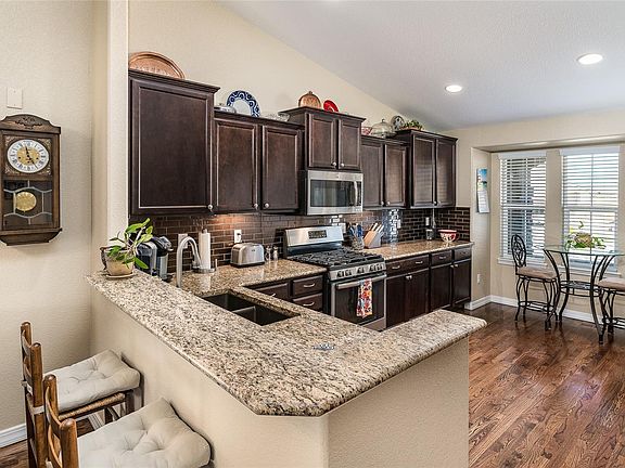 Take the time to see this Superb 3 year old, Open, Light & Bright 4 bedroom Rancher with lots of amenities & special features. There are expansive hardwood floors, a huge gourmet kitchen, breakfast nook, granite counters, gas cook-top & bar seating. The Fireplaced Family room with vaulted ceilings steps out to the covered rear patio and yard. The spacious Master offers a 5 piece bath with quartz counter tops all set in beautiful tile-work. The lower level is fully finished with a Great Room & 2 bedrooms and full bath. The home offers a nice front porch, backs to a neighborhood park, has a stucco exterior and new impact resistant roof.