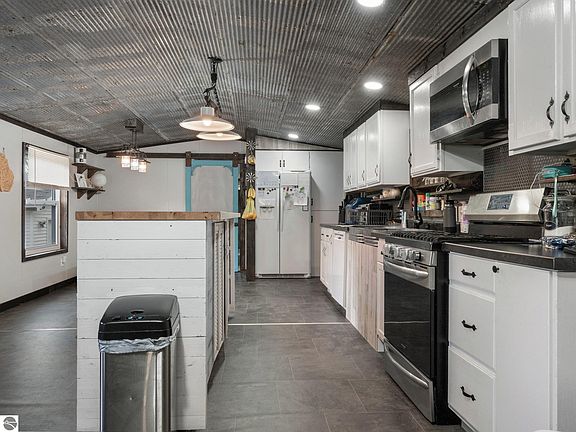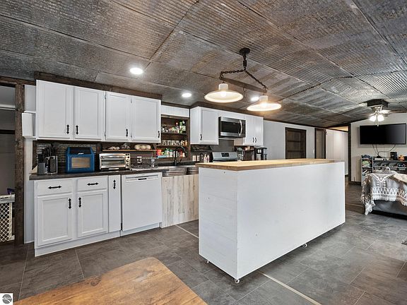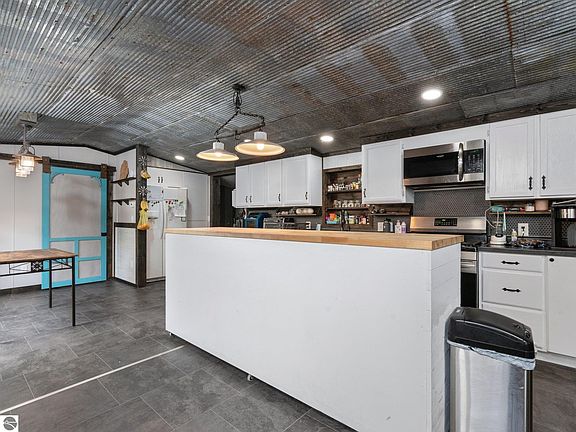 Discover your perfect retreat in this updated 4-bed, 2-bath house, conveniently located just north of Manton. The open concept kitchen features a huge custom island, and large pantry. Unwind in the master with multiple closets and a custom walk-in shower. Plus, a spacious bonus room awaits your creative touch! Updates include new flooring, tin ceilings, and custom bathrooms. Step outside to the back deck and enjoy the vast 10-acre property with barns ready for your hobby farm. Embrace a picturesque setting with seasonal ponds and access to outdoor recreation near the Manistee River and snowmobile trail.
