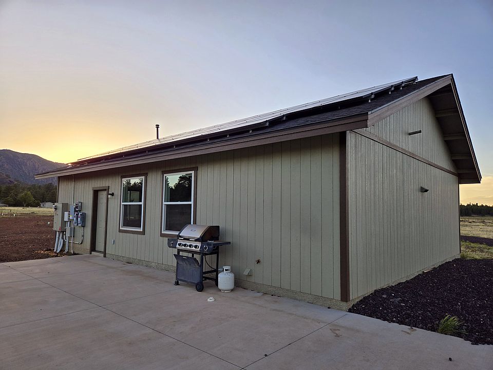 Beautiful home in rural neighborhood within city limits and 5 minutes from the Flagstaff mall. Outdoor space with large concrete patio with room for gardening. 2 bedroom 1 bath with storage shed. House also has pellet stove, washer, dryer, and dishwasher. Landlords with their young kids live in the main house on the 5 acre property. 12 month lease $2400 monthly rent plus utilities $2400 Security deposit Non smoking Pet policy- $200 initial pet deposit and $50/month per pet