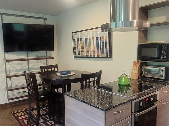 Furnished, light-filled, quiet, studio apartment with a sleeping alcove - 3 miles from OHSU, PCC, Lewis & Clark (2mi), and Downtown Portland. So, if you value privacy, nature, exceptional quality/value, and great commute options, then this should be your new spot! Private entrance/patio, wall of windows, off-street parking, fully furnished, new queen bed, wood-laminate flooring, high-end appliances, closets with drawers, extra storage, washer/dryer, all utilities, and Internet included. This is a single renter unit. Other items - non-smoking, off-street parking, all utilities, and internet included.