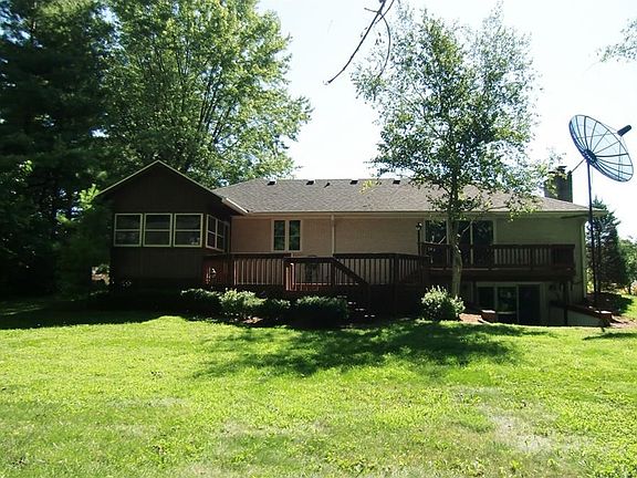 Need space? Try this custom built stone ranch with finished walk out basement. Lots of extras and built ins. Perfect home for entertainment, huge basement, 10x12 bar is a mini kitchen. 2 fireplaces, sun room, lots of kitchen cabinets and island equipped with sink Jenn Aire unit and Corian tops. Large workshop in basement. Multi level deck overlooks large yard that backs up to wooded area. Very private. 1 year home buyers warranty.