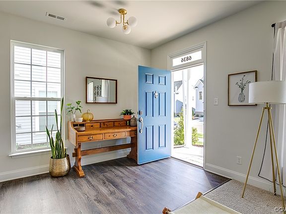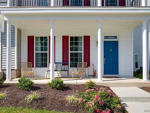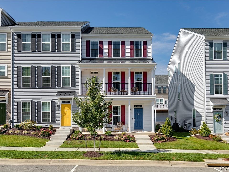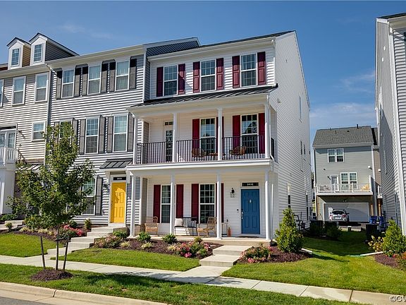 MOVE IN READY/LIKE NEW! This three-story, end unit townhome offers 3 bedrooms, 2 full and 1 half baths, rear load 2-car garage, and low maintenance exterior. Enjoy beautiful sunsets on your rear deck or relax on the charming covered balcony on the 2nd level. You will fall in love with the open concept of this townhome. The second floor offers a large living room, dining room, powder room, pantry, and a stunning kitchen complete with grantie countertops, ceramic tile backsplash, stainless-steel appliances, and an oversized 8’ island - perfect for entertaining. The first floor includes an oversized flex room, rough in bath, and coat closet. The third floor boasts a primary bedroom suite with 2 walk-in closets and ensuite bathroom with ceramic tile shower, double vanity. 2 additional bedrooms, full hall bathroom, and a laundry room wrap of this level. Living here is a dream with its many amenities, including a maintenance free exterior, clubhouse with fitness center, a resort-style pool, playground, firepit, dog park, community garden, sidewalks with pocket parks, and walking trails. The community exudes convenience being within walking distance to shops and dining. WELCOME HOME!