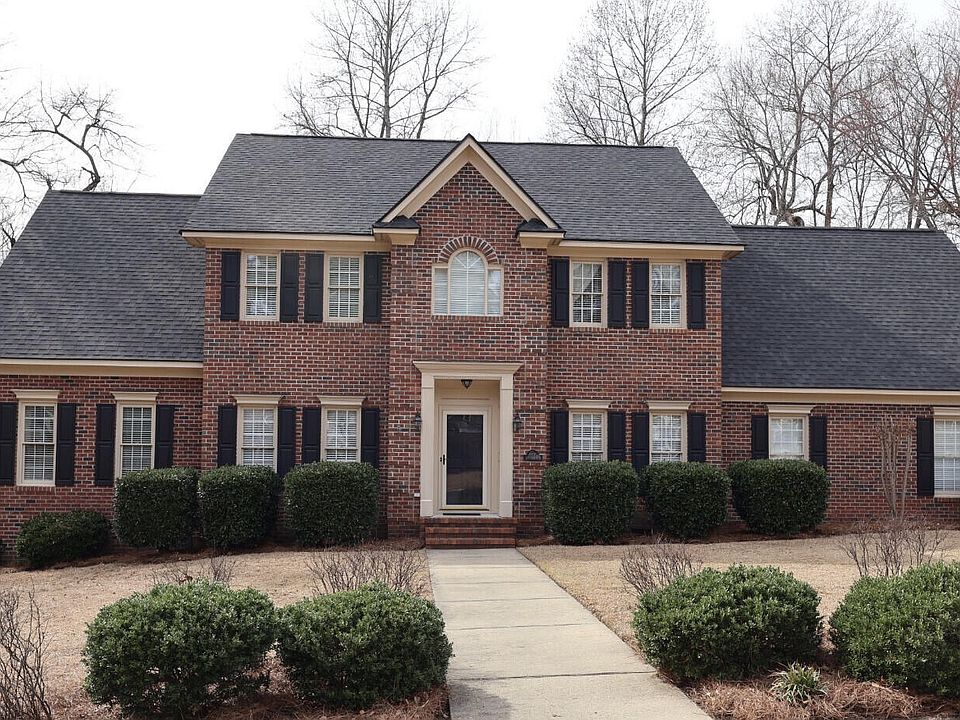 Beautiful and secluded all-brick custom home in exclusive gated/golf community of Gates Four. Jack Britt School District. Perfectly situated on a quiet cul-de-sac, backing to wooded area on 0.62 acre lot. New roof 2024. Beautiful hardwood floors throughout the entire downstairs. Formal dining room as well as eat-in kitchen nook. Living room opens to large great room with coffered ceilings, fireplace, and tall windows with gorgeous wooded view. Office with built-ins and coffered ceilings. Kitchen features custom pantry and granite countertops. New refrigerator and double range in 2022. 4 large bedrooms upstairs. Primary bedroom features unbelievable custom walk-in closet with granite island and built-ins. Large private bath, double vanity, jetted tub and separate shower. Upstairs includes a second full bath with double vanity and separate shower/toilet room, and third bath with shower. Screened-in Carolina room overlooking the wooded backyard. Large garage with built-in workbench.