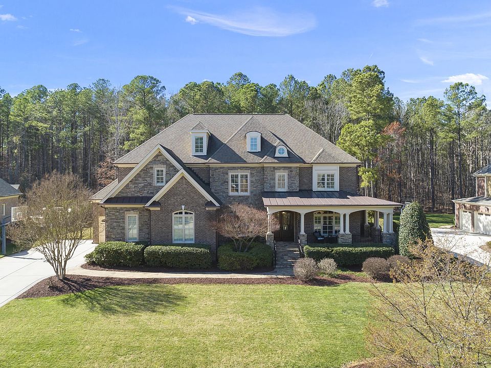 Absolutely gorgeous Copperleaf estate home located on an idyllic .61 acre lot. Backing to the American Tobacco Trail, the fenced back yard features a heated saltwater pool with tanning ledge, hot tub, jumping rock/grotto, fire pit, patio, screened porch with gas fireplace & a grill island. Inside you’ll find a turnkey home with a laundry list of recent updates, large rooms, intricate millwork throughout, coffered and trey ceilings, newly refinished floors, fresh int/ext paint & new bedroom carpeting. The updated kitchen features two islands, white cabinetry, Thermador stainless appliances, quartz countertops and a walk in pantry. 1st floor master bedroom with a beautifully refreshed master bath and his & hers custom closets. 1st floor office. Front and rear staircases lead to a 2nd level with 4 bedrooms, 4 full baths, a bonus room with wet bar & a flex/exercise room. The unfinished walk up 3rd floor boasts ample space & finishing options. Other features include a 4 sides brick exterior, distributed audio, plantation shutters throughout, sealed crawl space, dual tankless HW heaters & 3-car garage.