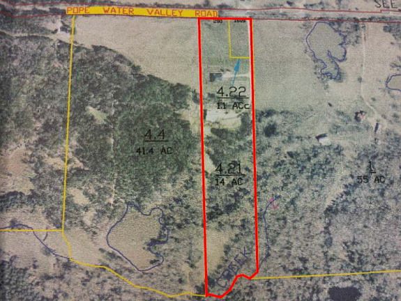 Wonderful property on Pope Water Valley Rd. The home has been well maintained and is in good condition. The property has a new hot water heater and roof was installed in 2008. The home sits on nearly 15 acres of beautiful land. The land has trees and pasture. Large shop/barn on the property with bathroom and kitchen, (60x62 covered and 30x40 enclosed) Large rear covered patio with outdoor speakers.