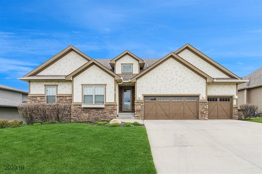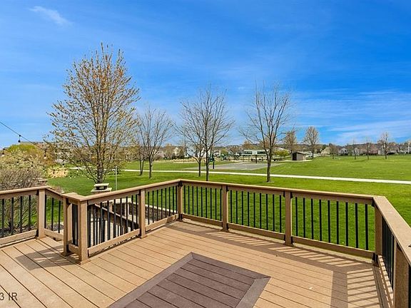 Former Home show home has southern exposure and backs to large Park and walking path. Sit on Trek deck or stone patio (w/fireplace) and watch kids play in park or play on BB court. Washer and HVAC new 2022. LL includes 4th bdr, full bar, large family rm w/ 2nd fireplace and wet bar/ kitchenette. Close to Jordan Creek Mall, St Francis School, I 80, and medical complexes. Contemp flair with high ceilings. Laundry hook up in master closet (never used) or Laundry rm in L Level. Underground dog fence, detailed fact sheet on attachment to Listing.