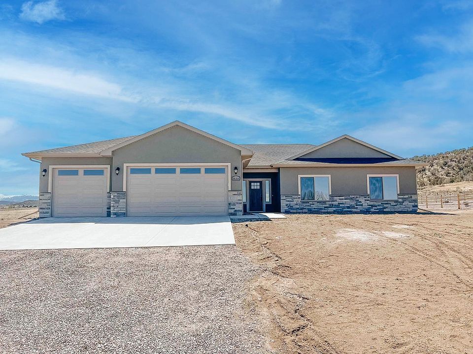 Beautiful new construction by JB Homes on just over 1 acre with stunning views. All on one level for easy living. Large family room with corener gas fireplace and windows galore to take in the beautiful Colorado views. Formal and casual dining areas. Kitchen with quartz countertop, black stainless appliances, cabinet pantry. Large master bedroom with patio access, master bath with dual vanities and step-in tiiled shower. Fourth bedroom makes a great office behind french doors. 3-car attached garage. HOA allows for additional shop and RV on lot. Irrigation water via the HOA.