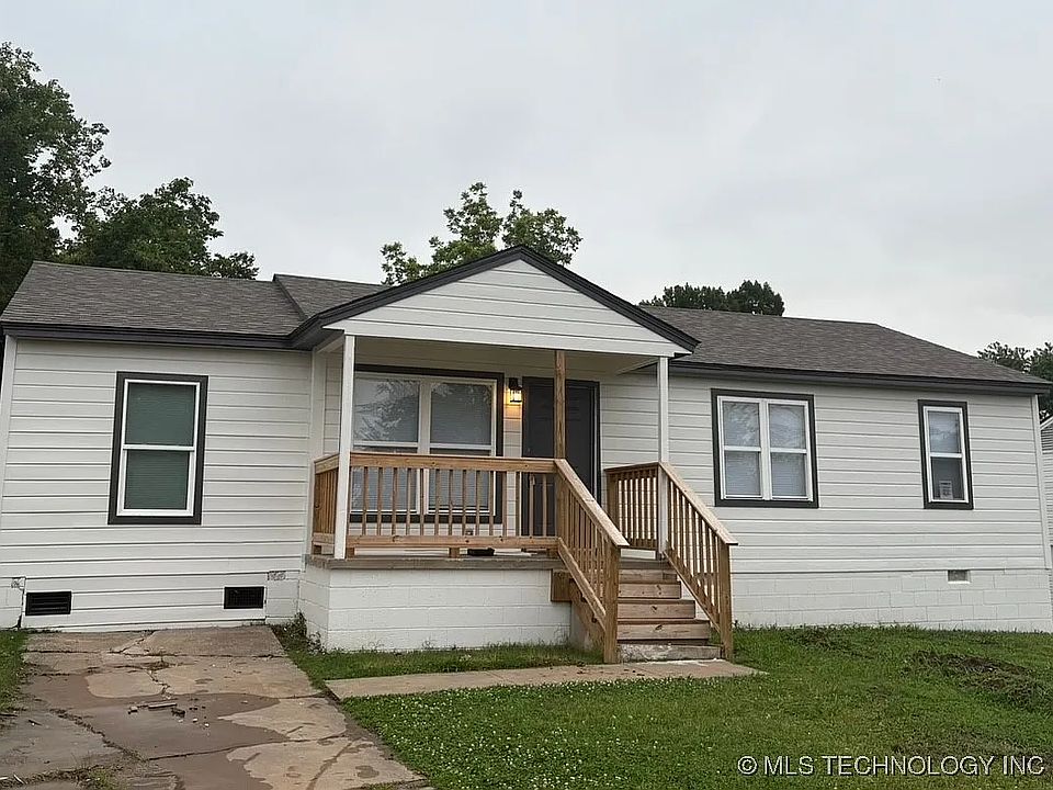 Recently remodeled with brand new kitchen, granite countertops, new appliances. New energy efficient windows, well insulated. Fresh paint and flooring throughout. Open floor plan. 4 bedrooms, 2 bath. Tankless water heater. Indoor laundry connections for stackables. Large front porch and spacious back yard.