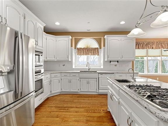Private backyard & Spacious interior. The custom touches throughout the inside & out set this home apart. Gourmet kitchen provides large island for additional prep space, gas cooktop, cabinets with pull out drawers & open to hearth room for entertaining. Main floor primary bedroom has private deck, see-through fireplace & fully remodeled bath with walk in shower & soaker tub. Down the curved staircase to your large family room designed with options in mind. Space for your office, home gym, TV, you decide. 2 large bedroom suites both have walk in closets & full baths. Zone heating & cooling, terraced backyard, large storage area, 3 fireplaces, 2 decks & backing to private farmland. Plenty of custom details that you will fall in love with at 6837. 2022-01-23