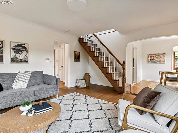 Fabulous home on Alameda! Featuring hardwood floors, coved ceilings, beautiful wood windows, new paint both inside and out, a refreshed kitchen with new tile and countertops, large bedrooms on the main, skylights to brighten the upstairs, and 7-foot ceilings in a spacious basement. In the summer, enjoy a gorgeous backyard with a hot tub and room galore to grow a plethora of flowers and veggies. In the winter, cozy up to a wood-burning fireplace. Other notables include AC, earthquake retro fitted, a garage and an osmosis water filtration system.A really sweet home in a wonderful Location! [Home Energy Score = 8. HES Report at https://rpt.greenbuildingregistry.com/hes/OR10009320]