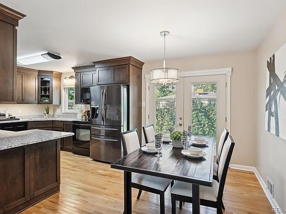 Nestled in the heart of Arvada on a tree lined street! Warmth and charm in this updated 4 bedroom, 3 bath, with hardwood floors throughout the main level. The remodeled kitchen boasts granite counters, newer dishwasher, and a rare find in these homes is a large pantry that keeps your kitchen organized and clutter-free. Primary suite is complete with an updated 3/4 private bath. The partially finished basement offers a haven of possibilities including a versatile space that can be customized to suit your needs. There is also a bedroom with an egress window and walk-in closet which is perfect for guests or family members seeking a bit of extra privacy. A bonus is the remodeled full bath! You will appreciate the newer furnace, newer central AC, and updated windows! There is also extra storage space plus washer & dryer included. Step outside, and you are greeted by a private, spacious backyard adorned with beautiful rose bushes, honeysuckle, and clematis. For those with a green thumb, you will appreciate the dedicated garden space with raised beds and a shed for extra yard supplies. Oversized garage with a workbench plus extra parking for additional car, camper, or boat! Concrete driveway and front walk replaced. Location, location! This home is perfectly situated near Arvada's light rail station, Olde Town's vibrant restaurants and shops, and provides easy access to I70 for commuting convenience. Enjoy the nearby Ralston Creek Trail, multiple parks, and the Apex Recreation Center for endless activities. Great place to call home!