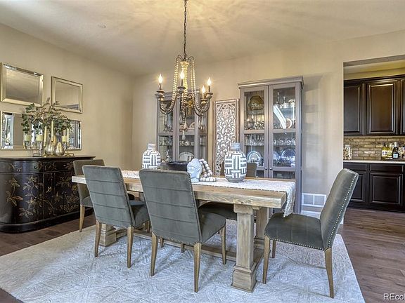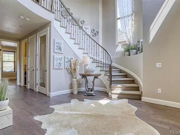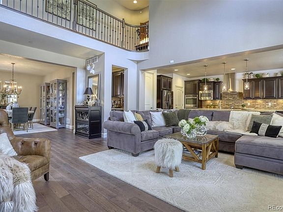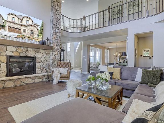 Welcome to this stunning mountain contemporary, low maintenance home in the prestigious golf community of The Village at Castle Pines! Upon entering this home, the curved staircase, vaulted ceilings, open floor plan will draw you in to the family room and kitchen with the large kitchen nook overlooking the expansive patio area and the open space with scrub oak, ponderosa pine and wildlife. This gorgeous, easy living home features beautiful wooden floors, new interior paint, a gourmet kitchen with a huge island. The impressive fireplace has natural stone surrounding and a wooden mantle with built in wiring for your flat screen TV. The butler's pantry conveniently adjoins the dining room. The main floor also has a bedroom that is currently used as an office. The upper floor boasts an owner's suite with exposed wood beams and vaulted ceiling, a 5-piece bathroom and huge walk-in closet. You will also find 2 additional bedrooms and a loft upstairs. The large loft can easily be converted into another bedroom if needed. The basement is thoughtfully finished and easily accommodates a great room with a wet bar, 2 bedrooms, a bathroom, and a storage room. You will love to have guests stay over and be in their own area. South facing driveway with minimal snow shoveling in the winter makes this an easy living home with xeriscape landscaping and no grass to mow! The 3-car garage has an extra area for more storage. The security is comprised of 5 gated entries into the community, 24-hour security patrol, 24-hour EMT's, alarm monitoring for fire, burglary and medical assistance, vacation monitoring and emergency transportation within The Village. The home has a fire suppression system and security system. The amenities in Castle Pines Village are amazing with pools, a spa, yoga, fitness center, 5 tennis courts, pickle ball courts, and a basketball court, clubhouse, 3 play parks, 13 miles of trails. Make sure to take a tour and explore all the wonderful areas in the community!