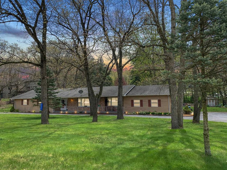 THE MOST BEAUTIFUL AND SERENE SETTING YOU WILL FIND AT AN AFFORDABLE PRICE! Nearly 2,200 FINISHED SQ FT, 3 BED, 2.5 BATH DESIRABLE RANCH STYLE HOME nestled on nearly an acre of mature trees. GRAND entry leads to open concept formal LIVING and DINING ROOM featuring LARGE CUSTOM WINDOWS and neutral move-in ready colors! Large kitchen with TONS OF CABINETS, DOUBLE PANTRY, Built-in Desk, and APPLIANCES THAT STAY! Kitchen OPEN to great room with FIREPLACE, large bay widow to take in the VIEWS, and conveniently open to back deck! Master bedroom has your own private bath and ceramic tiled walk-in shower. Large laundry room and private half bath conveniently located off 2.5 car garage. Deck, fire-pit, and desirable wrap around driveway perfect for entertaining. LOW TAXES and UNBEATABLE LOCATION (literally, 5 minutes from shopping). Schedule your showing TODAY!