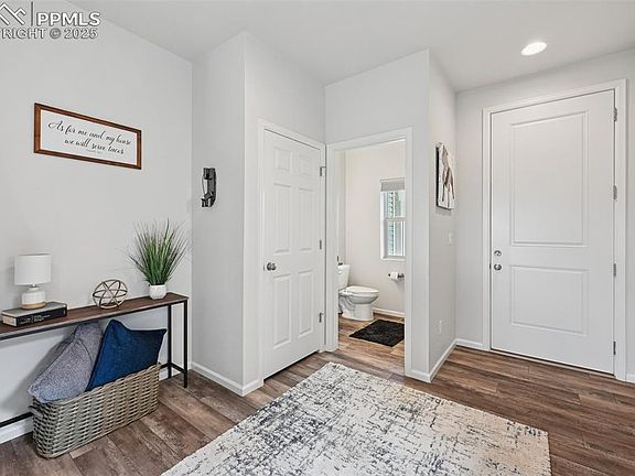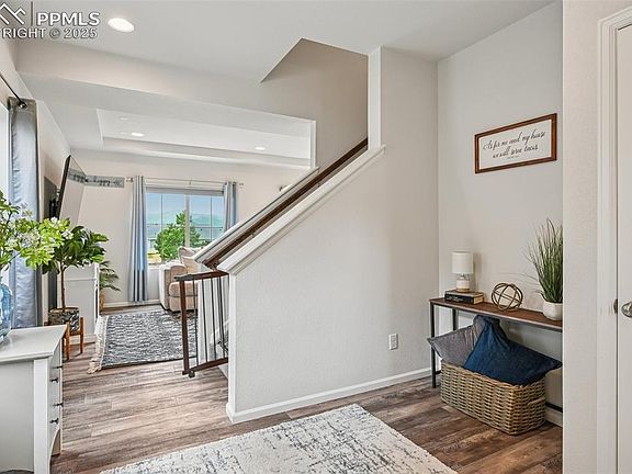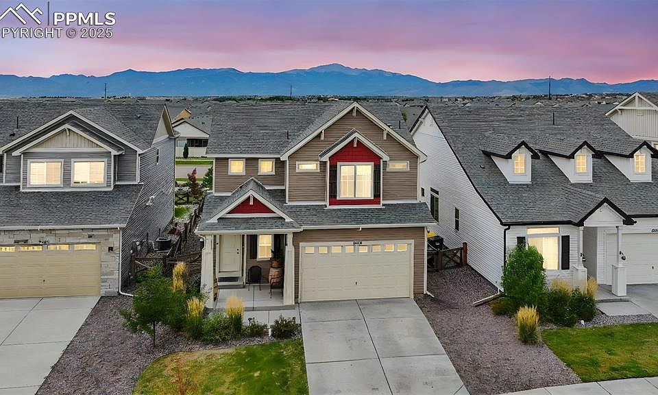 This beautiful 4-bedroom, 4-bath, 2 story home in Banning Lewis Ranch features expansive mountain views and an open-concept main level with luxury vinyl plank flooring. The kitchen includes a large granite island, stainless steel appliances, gas cooktop, subway tile backsplash, and walk-in pantry. The west facing great room features a wall of windows allowing so much natural light and frames the gorgeous mountain view. The upper level encompasses the primary bedroom with en-suite bath and walk-in closet, two additional bedrooms, hall bath, conveniently located laundry room, and a flexible office space. The finished basement provides a 4th bedroom, family room, full bath, and ample storage. Large fully fenced back yard w sprinkler system. The property is located near shopping, dining, entertainment, military installations, charter schools, and community amenities. Residents have access to walking and biking trails, farmer’s markets, summer concerts, a 24-hour fitness center, tennis courts, dog parks, aquatic center, junior Olympic-size pool, playgrounds, and parkland spanning over 65 acres. Move in ready. Quick close available!