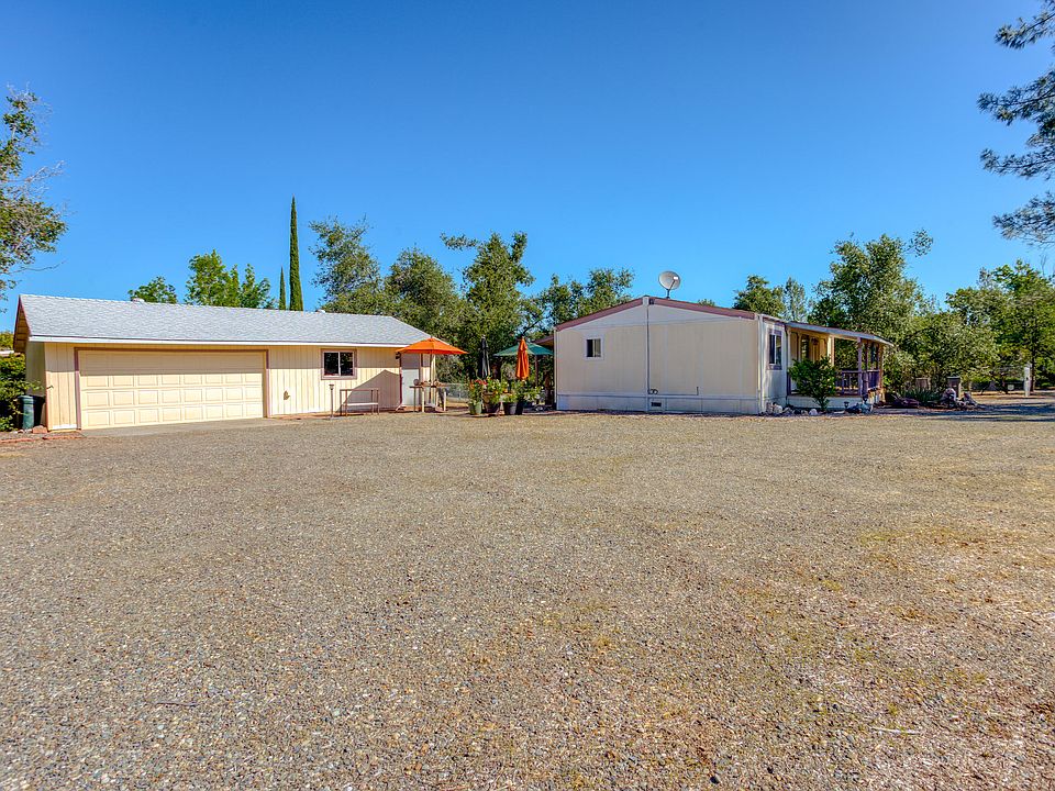 NOT A DRIVE-BY. SHOWN BY APPT ONLY. 3/2 manufactured home on a cul-de-sac, located on one full, secluded and peaceful acre. Wildlife abounds on this treed, level, and fenced property. Massive, 960 sq ft, detached, finished garage/shop. Multiple covered decks, outbuildings, and gated entry for added privacy and security. The home boasts a open kitchen design, with large master suite. CB816