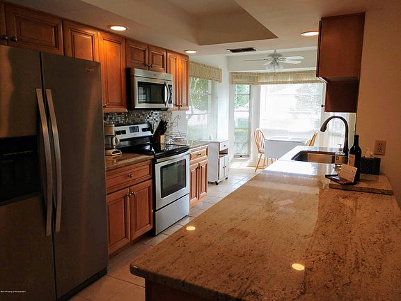 HONEY, STOP THE CAR!! Do not miss this beautiful 2/2/2 Repaired Sinkhole home on a quiet cul-de-sac! Kitchen has been updated with gorgeous granite counters, stainless steel appliances & raised wood cabinets. Enjoy eating at your breakfast bar or in your light & bright dining area. Both baths were also updated with high raised wood vanities & granite tops. The large lanai overlooks a beautiful backyard. most home Furnishings and Golf cart also available and can be negotiated with sale of home.
