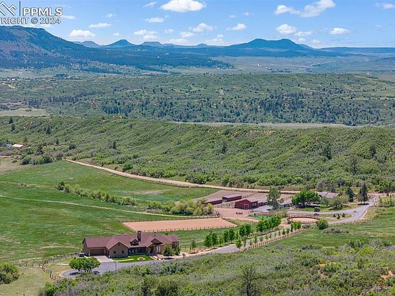 Under the vast, open skies where the heart beats in rhythm with the land, this 137-acre ranch emerges as a place where adventure meets serenity, offering a gateway to a life less ordinary. Here, the promise of the wild blends with the comforts of modern living, located 20 minutes from city conveniences and 40 mins to DIA, yet worlds away in spirit. Property includes residence, guest house, and 4 outbuildings. Whether venturing the land by foot, horseback, or ATV, you’re immersed in an intricate tapestry of native grasses, century-old trees, rugged hills, and ravines. Soft breezes carry the scent of pine mixed with the earthiness of soil damp from the dew. Take a rest at the pinnacle vantage point, with sweeping views of the foothills, Dawson Butte, Bee Rock formation, and Downtown Denver. Perhaps you will see a bald eagle soaring high above or discover an antler shed from last year’s herd. At dawn, the property becomes the stage for a breathtaking spectacle, a roaming herd of over 75 elk - a daily reminder of the land’s unspoiled beauty. Sharing borders with the sprawling 3,500-acre Pine Cliff Ranch to the north, 240 acres of conserved private property to the east, plus 440 acres of land conserved by the county to the west, ensures the property’s vastness is preserved. Kick your boots off! The main residence masterfully intertwines comfort with elegance. Crafted with uncompromising quality, every detail, every piece of trim, all the beautiful white millwork is a commitment to refinement and durability. The interior design is a graceful nod to French country style. Expansive windows perfectly frame Dawson Butte, offering a living portrait that changes with the light of each day. The guest house is remodeled and offers a full kitchen, 3 beds, and 3 baths. Equestrian and cattle amenities include 4-stall barn, 100'x200' arena, round pen, 5 pastures, and 2 cattle sheds.