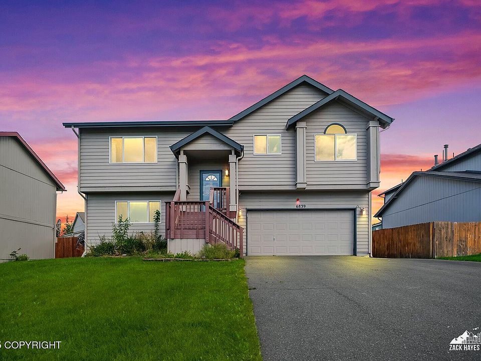 Pride of ownership shines in this beautifully maintained home, Featuring 3 BR, 2 full BA, and a two-car garage, this property is designed for both comfort and convenience. The main living space offer a warm, functional layout, while the upper-level balcony is the perfect perch to enjoy peaceful mountain views--your own little daily reset button. A fully fenced, level yard provides room fopets, play, gardening, or all three. An added bonus: RV parking gives you the freedom to easily store your toys or gear With no HOA, you'll enjoy the freedom to truly make the property your own. Conveniently located near JBER, Tikahtnu Commons, and quick access to the Glenn Hwy, you're never far from shopping, commuting routes, or weekend adventures. Whether you're downsizing, just starting out, or somewhere in between, this home delivers the kind of quiet reliability that's hard to find and easy to love.