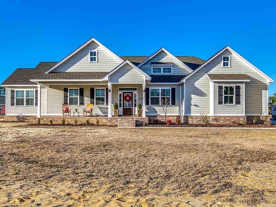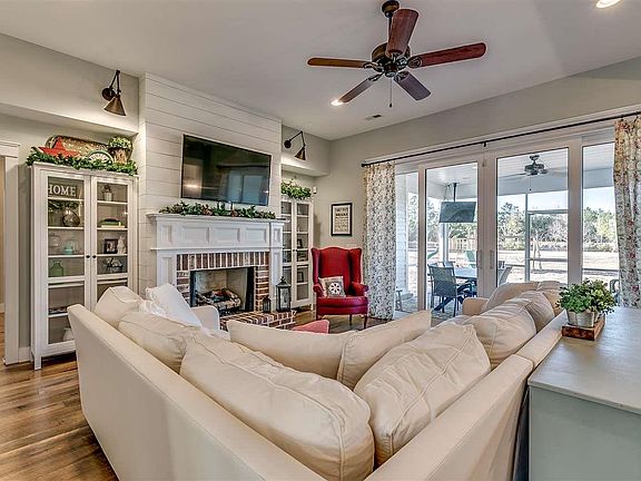 When you enter through the front door you are met with a farmhouse charm with character details such as: ship lap walls, hardwood floors throughout, neutral color palette, lighting, brick paver front porch and back porch- just to name a few. Off the foyer, through the set of French doors, is an office. Straight ahead you will enter into the open and airy Kitchen, Dining and Family Room area. Being open and airy allows you to never feel separated from your guests when it comes to entertaining. The kitchen has a large work island with breakfast bar, granite counter tops, stainless steel appliances, subway tile and lots of storage. There are built-ins on either side of the gas(logs) fireplace in the family room with sliding glass doors that lead you to a beautiful screened porch overlooking your private backyard. Off of the Family Room area you will find 3 bedrooms and a play/sitting area. 2 of the bedrooms are joined together by a Jack-n-Jill bath, the other bedroom has its own bath. Off the kitchen area you will find the Master Suite which features a tray ceiling, WIC, his and hers sinks, whirlpool tub for relaxing and a tile shower. The half bath has a door for easy access from the outside. The area by the garage and laundry area has a ship lap wall with storage cubbies and hooks. Detached 12 x 16 storage shed. This 4 BR, 3 ½ BA home sits on 1.85 acres and backs up to a pond. Definitely a must see!