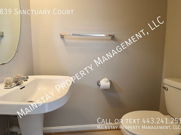 Available immediately! Welcome to 6839 Sanctuary Court, an end unit 3 bedroom townhome with garage and private back deck! Enter the lower level to a bonus rec space with fireplace, laundry, a half bath, and access to the backyard through sliders. Main level features an open floor plan with beautiful kitchen, gleaming hardwoods, ample natural light, and access to back deck. Kitchen complete with SS appliances, modern white cabinets, and a pantry! Primary bedroom features high ceilings, a walk in closet, and an en-suite bathroom with double vanity, standing shower, and soaking tub! Full bathroom in the hallway is shared between the two additional bedrooms. Bonus cabinets and countertop in upstairs hallway provide an additional storage solution! Attached garage plus driveway means parking is never a problem! Pets negotiable $45/month in pet rent. Schedule your showing today!
