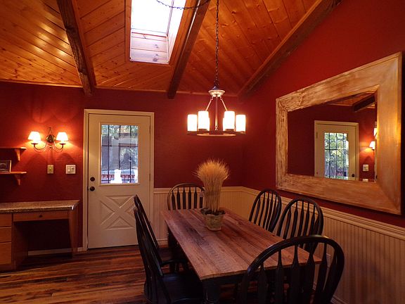 Beautifully remodeled 3,088 sq ft home with fantastic views from every window. The remodeled kitchen boasts stainless steel appliances; new counter tops; butcher block island; wine fridge and new lighting fixtures. The main level has authentic reclaimed barn wood flooring; wood stove; new lighting fixtures and wood vaulted ceilings. The lower level has a master suite with remodeled bath; family room with wet bar and wood stove. Upper level also has a master suite, plus two guest bedrooms and another bath. Private deck in back features a hot tub. Add a 2 car garage with a workshop. On a cul de sac - NO HOA If you like sitting on your front porch and watching the rain clouds come over the Rim, this house is for you.