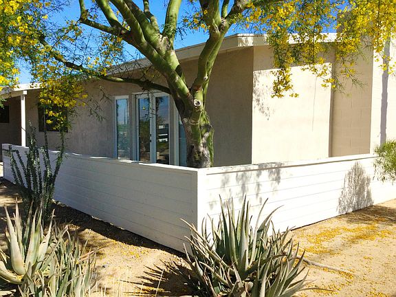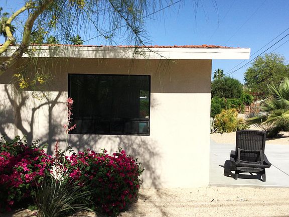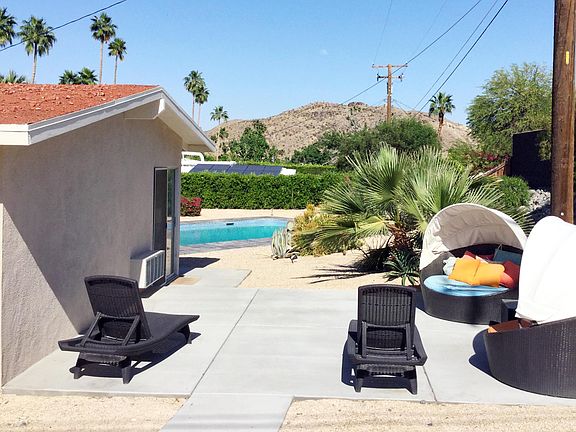 This recently refreshed Mid Century Modern property in The Cathedral City Cove includes a three bedroom home and an attached studio apartment casita.Dining room with its own fireplace opens up to a great room with a second fireplace. The outdoor space off the great room offers views of both San Gorgonio and San Jacinto.Kitchen includes bar serving area, ample cabinet space and two pantries.Master suite opens on to its own patio near the pool. The casita has its own entrance, private patio, yard, and separate heating and A/C unit.Beautiful pool with views of the cove hills. Pool area patio has outdoor television and service sink. Fully ready for a new outdoor grill. New fencing surrounds back of property.Two car garage, driveway and street parking. Desert-scaped front yard offers a dramatic walk way from the street to the front door.Cathedral City Cove is quiet and secluded but also minutes away from the new casino. Twenty minutes to central Palm Springs during season.