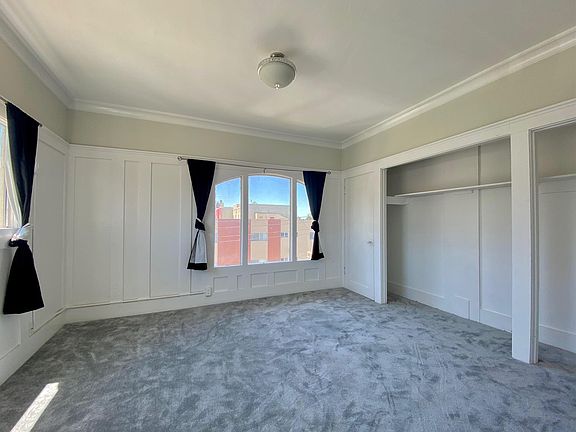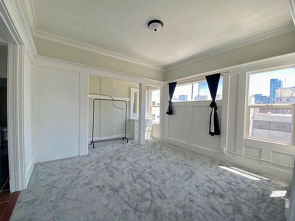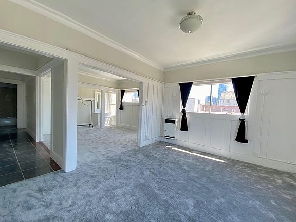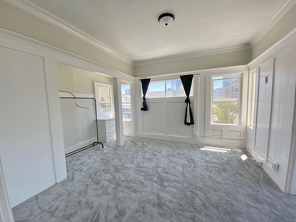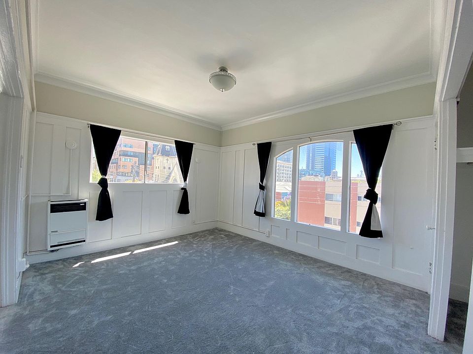 Large 1 bedroom apartment on the third floor of a vintage building. Large windows in the living room with great light. Newly installed carpet. Large closets in living room and bedroom. Open floor plan with great feel of spaciousness. Laundry room in building. This building is walking distance to Civic Center Bart station. Easy access to major freeway. Unfortunately there is no parking on-site. Tenant responsible for all utilities except for Garbage and water. 1 Year lease.