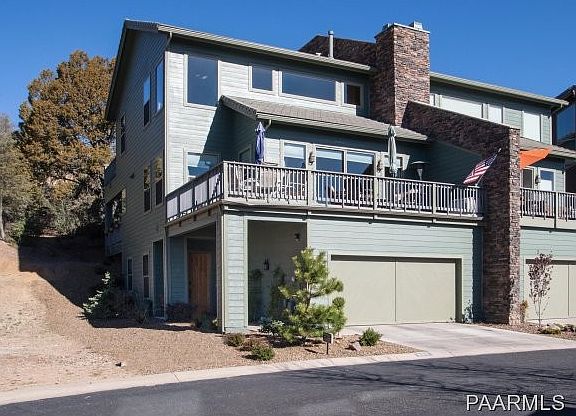 WOW! Shows like a model! Beautiful long distance VIEWS are captured from the main living areas of this 3618 square foot home set in the gated Aspen Creek Meadows of Hassayampa Village. Top Quality finishes are found throughout this 4 bedroom, 4.5 bath home. The entry level includes an oversized two-car garage, foyer, bedroom/den with full bath. The main level boasts of a dream kitchen with rich granite countertops, island, pantry, Thermodor 36'' gas range/oven and loads of beautiful cabinets; dining area; Great room with soaring ceilings and stone faced entertainment center; an extended deck perfect for entertaining outdoors on starry nights or morning coffee; luxurious master suite; laundry and powder room. The upper level offers a second master suite with deck, guest bedroom, full bath and office/den loft. Other features include a paneled elevator and beautiful open railings that increase the light and airy feel of this dramatic town home.