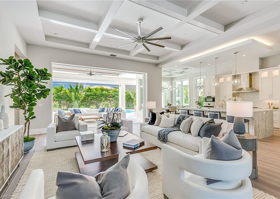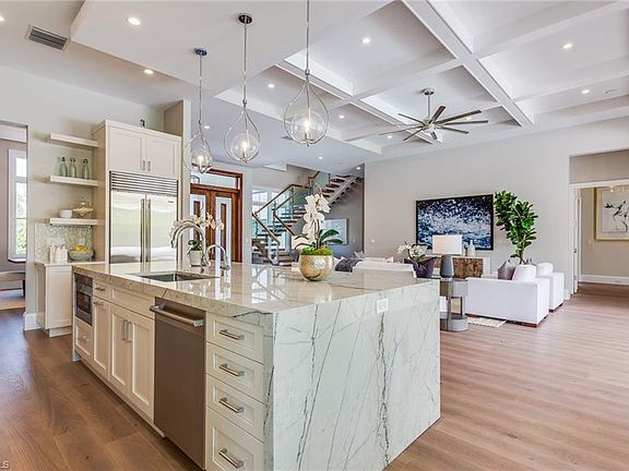 Just completed. Incomparable Coastal West Indies style retreat with preferred southern exposure. 4400 square feet includes four bedrooms and den, 6 bathrooms, 4 car garage and is graced by French Oak hardwood floors, custom millwork, a gourmet kitchen with Wolf and Sub Zero, automated roll down screens and shutters, phenomenal outdoor resort-style amenities, and more to promise a truly authentic, rare and phenomenal handcrafted generational estate in The Moorings. The home is exceptionally bright throughout and offers an ideal layout perfect for entertaining including seamless indoor to outdoor integration. Perfectly placed, in a quiet enclave of the Moorings on a very large lot(.43 Acres) only a short stroll to the private Moorings Beach Park this remarkable home without a doubt is the best opportunity for new construction West of 41.