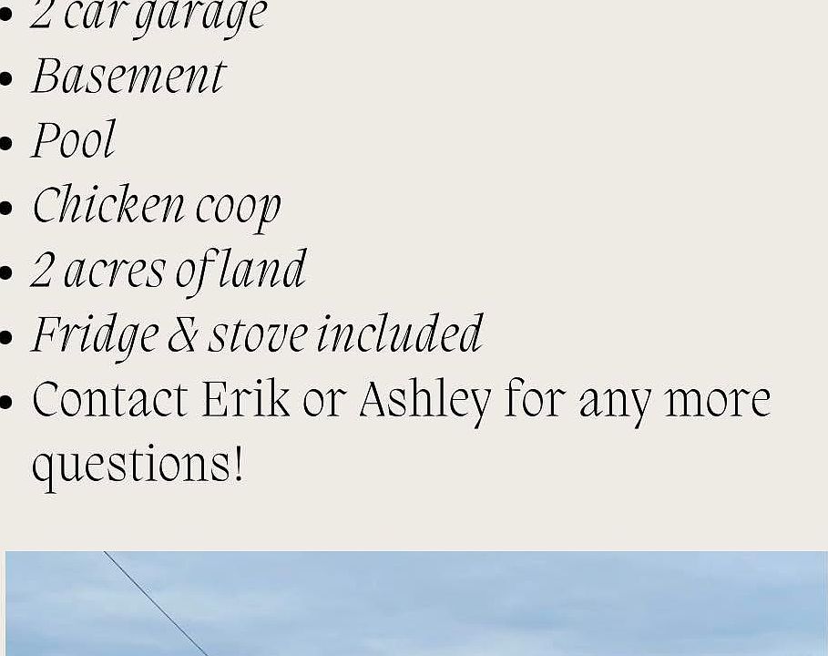3 bedroom, 2 bathroom, basement, 2 car garage, pool, chicken coop, UASD, one pet allowed, yearly lease, references required, utilities not included; propane & electric.