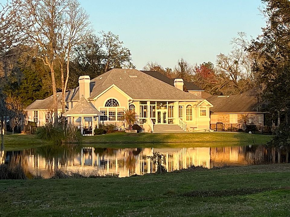 3 bedroom, 3.5 baths. Large LR/DR, great room with fireplace, breakfast nook and all new kitchen all with 12’ ceilings. Master suite with fireplace. 3 walk in closets. Screened patio. New pool and deck. Gazebo, beautiful fenced back yard on lake, golf course, very private.