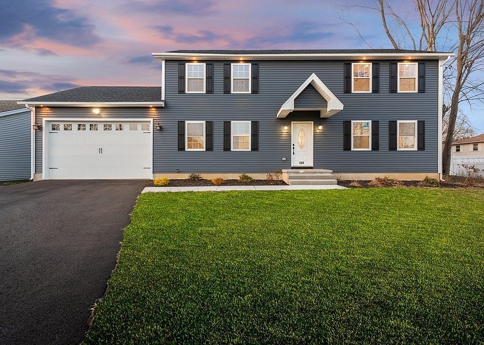 Bright and Beautiful New Construction! Complete and ready for you to call this home! Custom built 4 bedroom, 2.5 bath colonial. Featuring a large kitchen with an over sized center island. Shaker white cabinets and granite counter-tops. Stainless steel appliances including gas range with hood. Flexible first floor office/guest-room/bedroom. Open floor plan very conducive to large gatherings and entertaining. First floor laundry room. 2nd floor features a large master bedroom, master bath with double sinks and walk in tiled shower. Custom walk- in closet. Beautiful finishes including wainscoting. Large windows throughout let in plenty of light! 2 car garage and full basement. Custom exterior recessed lighting. Open the sliding doors off the dining room to a large concrete patio overlooking 3 acres of land. Additional oversized 2 car garage next door included for personal use or rent it out! Schedule a tour today!