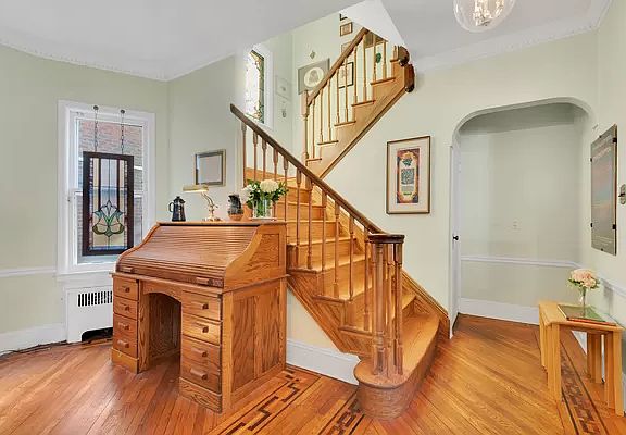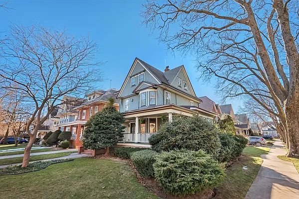 Country Living in Brooklyn! Nestled on the corner of East 17th Street and Irvington Court on the peaceful tree-lined Flatbush Malls, this gracious 1910 built classic Victorian 5 Bedroom, 2 full and 2 half bathroom, with a front porch, a rear deck and a 2 car garage is the home of your dreams! Idyllically set back and surrounded by greenery, mature trees and both a generous front and side lawn, a gorgeous fluted columned porch welcomes you, ideal for quiet enjoyment day or night. There is also a lovely east-facing secluded porch around back perfect for outdoor dining. The distinctive corner location of this home is gloriously felt on the entry level, where sunlight floods (through beautiful oversized windows from three exposures and offers a seamless open layout between the expansive living and dining rooms and the eat-in kitchen. This home has a perfect layout with beautifully preserved period details throughout, including intricate inlays and hardwood floors, oversized wood framed windows, built-in book shelves, dentil and arched moldings and gorgeous stained glass. Equipped with energy efficient AC throughout the house, the light filled custom eat-in kitchen is a chef's delight, and has been tastefully renovated with stainless steel countertops and backsplash, two custom sinks, dual ovens, a Bosch dishwasher, as well as an LG refrigerator. There is ample storage with custom cabinetry which was designed efficiently and effectively. Enjoy meals throughout the year, on the generous deck directly off of the kitchen. A charming half bathroom rounds out the parlor floor. On the 2nd floor are three large bedrooms, with great light and pretty views of the Flatbush Malls Esplanade. One of the bedrooms features a walk-in cedar-lined closet. The large full bath has both a jacuzzi tub and a spacious shower. On the top floor there is a large bedroom/office with a spacious walk-in closet with two windows with tree-top views! In addition, there is another bedroom with yet another walk-in closet, as well as another full bathroom with a large tub and separate shower. The wood-paneled finished basement offers flexible usage possibilities: a media room, a children's playroom, a gym, or an office! There is also a laundry room, and a half bathroom. 684 has a new boiler and hot water heater. This charming house feels like you are in suburbs, but yet is close to the best of everything in NYC, including excellent restaurants at Newkirk Plaza and Cortelyou Road, and Prospect Park. One block to the B and Q trains at Newkirk Avenue, 30 minutes to Manhattan! Showing by appointment only.