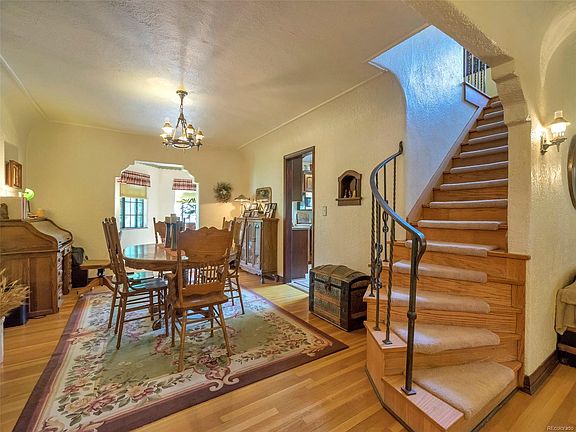 Custom 1.5 story Tudor Style masterpiece one of the most ICONIC and HISTORIC homes in the Limon Community! Built in 1930, this brick home was built with meticulous attention to detail. Charm abounds from this 4 bedrm, 3 bath classic home! Interior is rich with character & architectural touches - You'll find high cove ceilings, glass door knobs, incredible moldings & trim, gleaming oak floors, curved staircase, & original fireplaces. Master suite on the main floor w/ updated master bedroom & walk-in closet. Corian countertops in kitchen. Full finished basement w/ oversized family room, bedrm, bath, laundry room & extra "coal" room that was used to store the coal originally. Two separate stairways provide access to the lower level. Located on corner lot one blk from the school w/ amazing outdoor amenities featuring an expansive lawn, 2 car garage, plus a driveway for more cars! This luxurious home itself is a one-of-a-kind treasure, making this a once in a lifetime opportunity to own it!