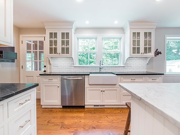 Mint cond. sprawling ranch with brand new kitchen, appls, counters & floor. Front to back LR; plus FR w/ FP; 3 BR's- MBR with Full Bath w/ newer cab; Enclosed 3 season porch; additional 591 sqft in basement (not included). Gas heat/CAIR. New windows. New roof. New garage door.
